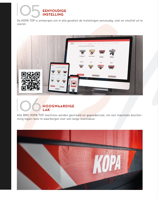 BMC KOPA TOP strooiers zijn geheel gestraald en gepoedercoat, tevens als RVS uitvoering leverbaar!